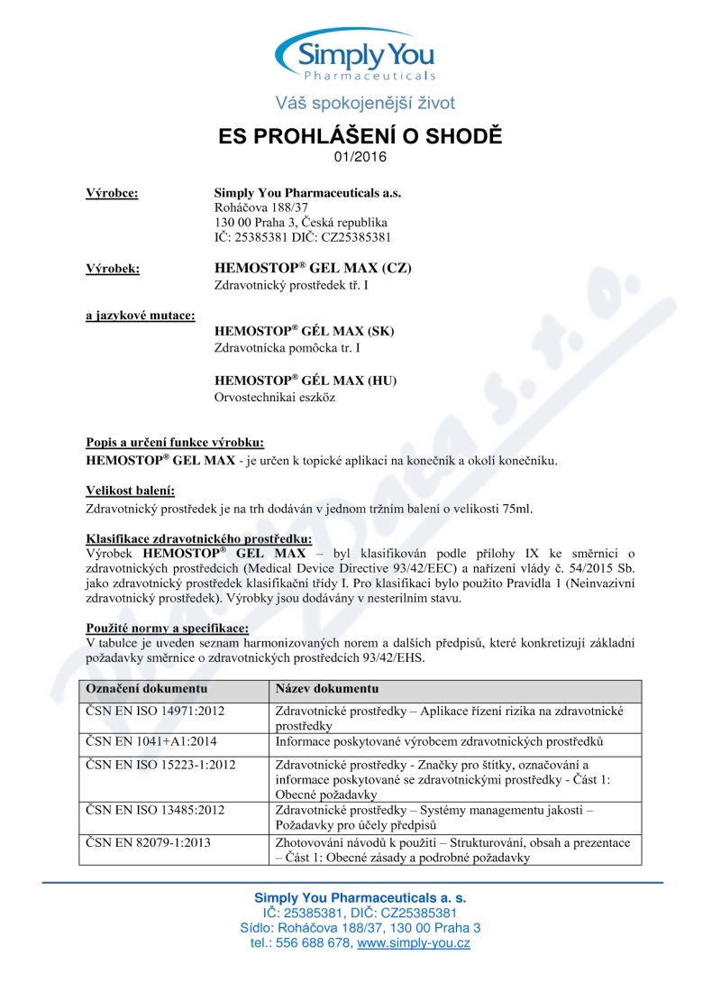 2 strany prohlášení o shodě: strana 1, strana 2,