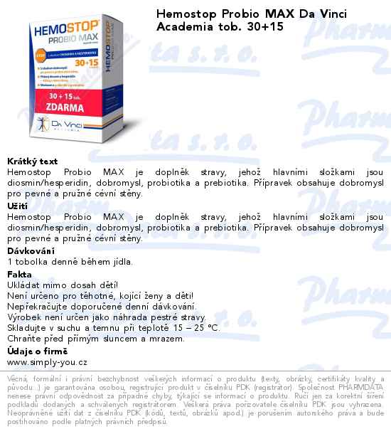 Hemostop Probio MAX Da Vinci Academia tob. 30+15