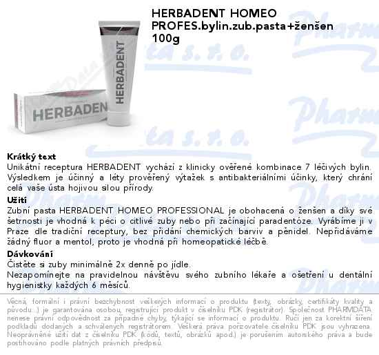 HERBADENT HOMEO PROFES.bylin.zub.pasta+ženšen 100g