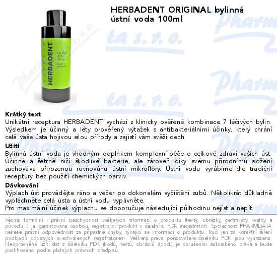 HERBADENT ORIGINAL bylinná ústní voda 100ml