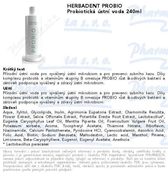 HERBADENT PROBIO Probiotická ústní voda 240ml