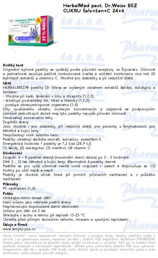 HerbalMed past. Dr.Weiss BEZ CUKRU Šalv+žen+C 24+6