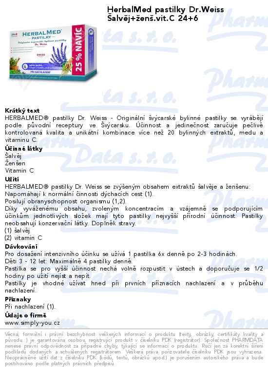HerbalMed pastilky Dr.Weiss Šalvěj+ženš.vit.C 24+6