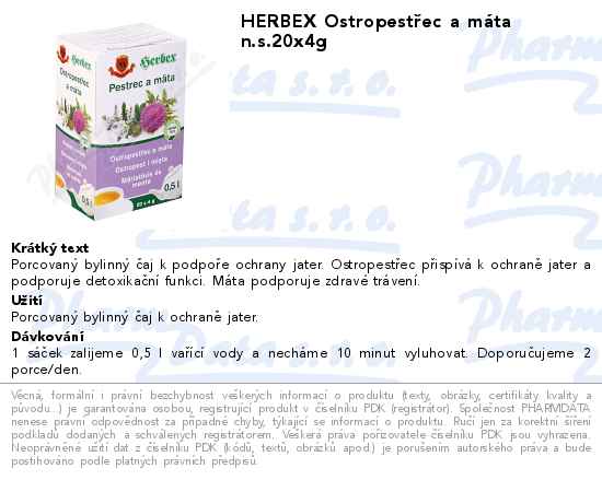 HERBEX Ostropestřec a máta n.s.20x4g