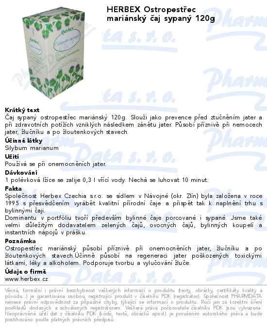 HERBEX Ostropestřec mariánský čaj sypaný 120g