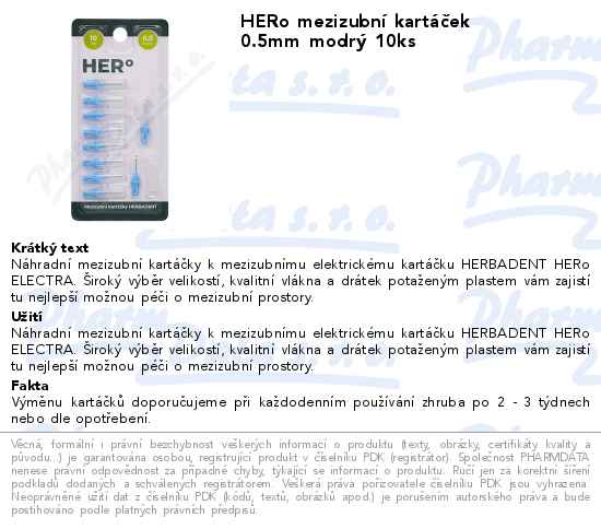 HERBADENT HERo mezizubní kartáček 0.5mm modrý 10ks