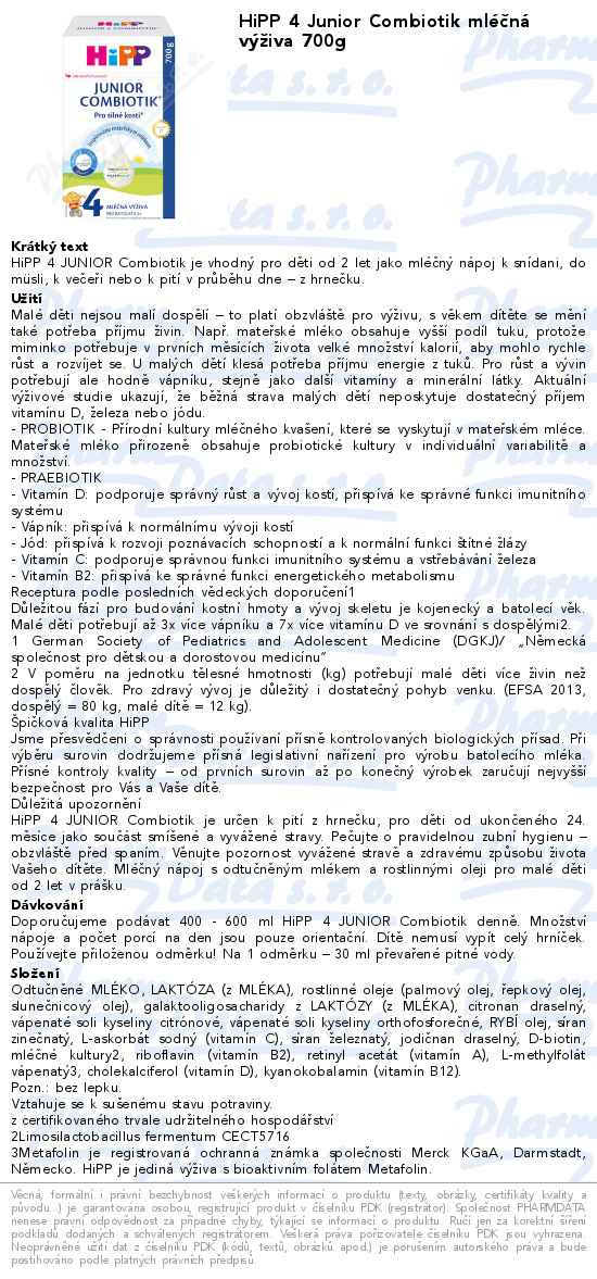 HiPP 4 Junior Combiotik mléčná výživa 700g