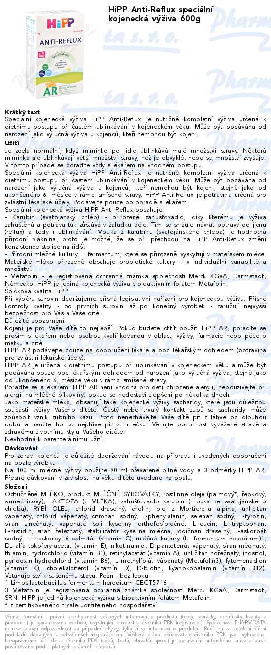 HiPP Anti-Reflux speciální kojenecká výživa 600g