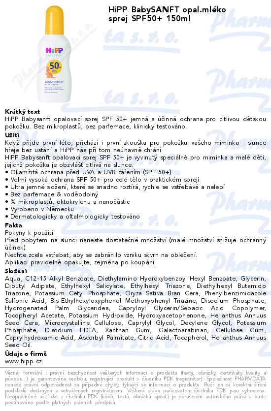HiPP BabySANFT opal.mléko sprej SPF50+ 150ml