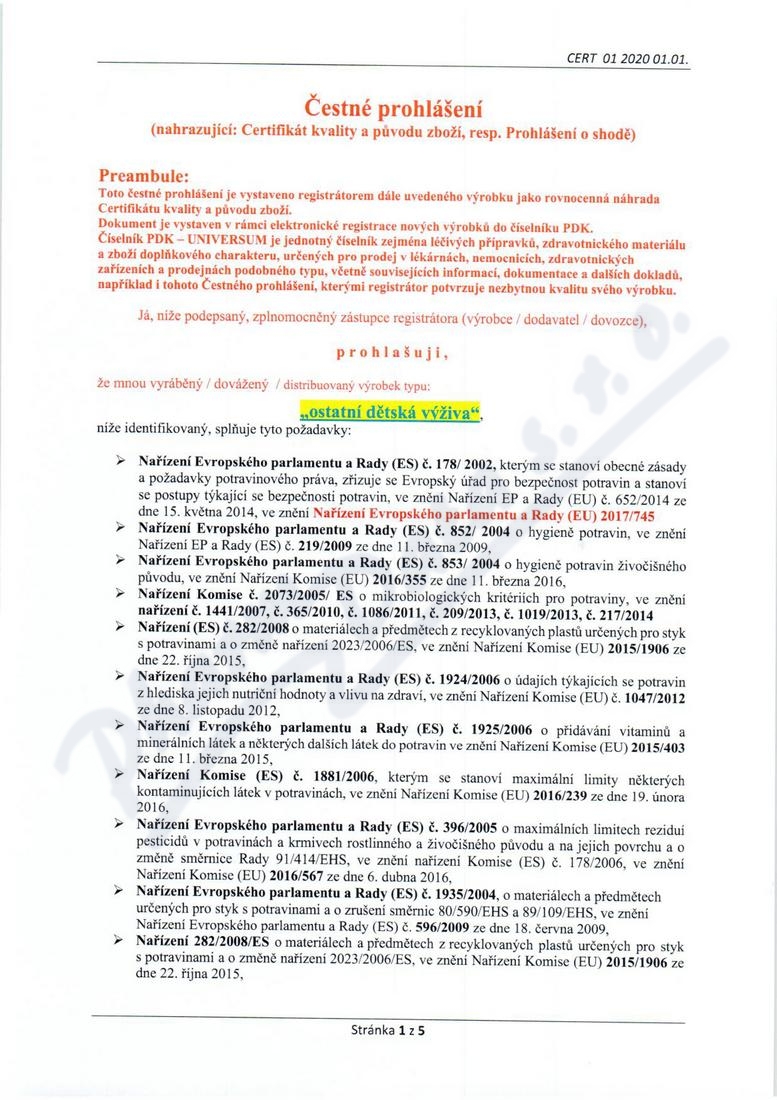 5 strany čestného prohlášení: strana 1, strana 2, strana 3, strana 4, strana 5,