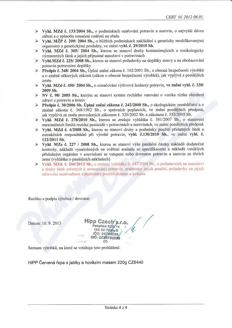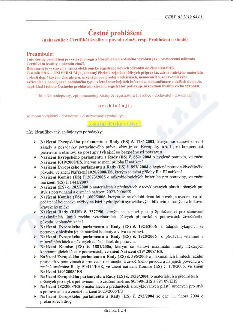 5 strany osvědčení hlavního hygienika: strana 1, strana 2, strana 3, strana 4, strana 5,