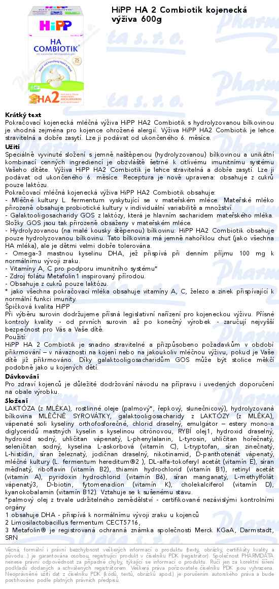 HiPP HA 2 Combiotik kojenecká výživa 600g