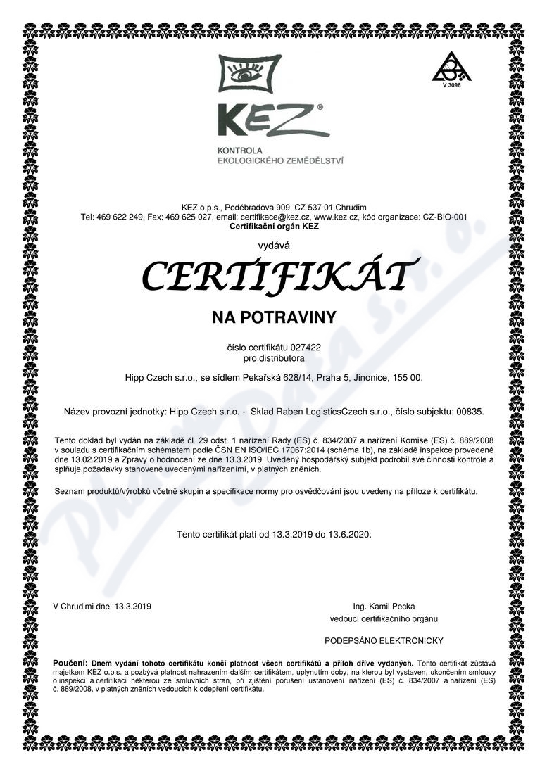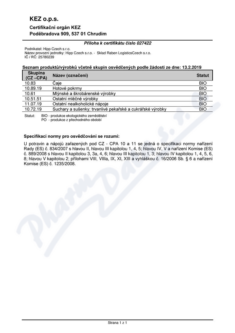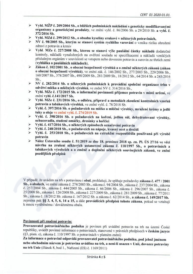 2 strany osvědčení hlavního hygienika: strana 1, strana 2,