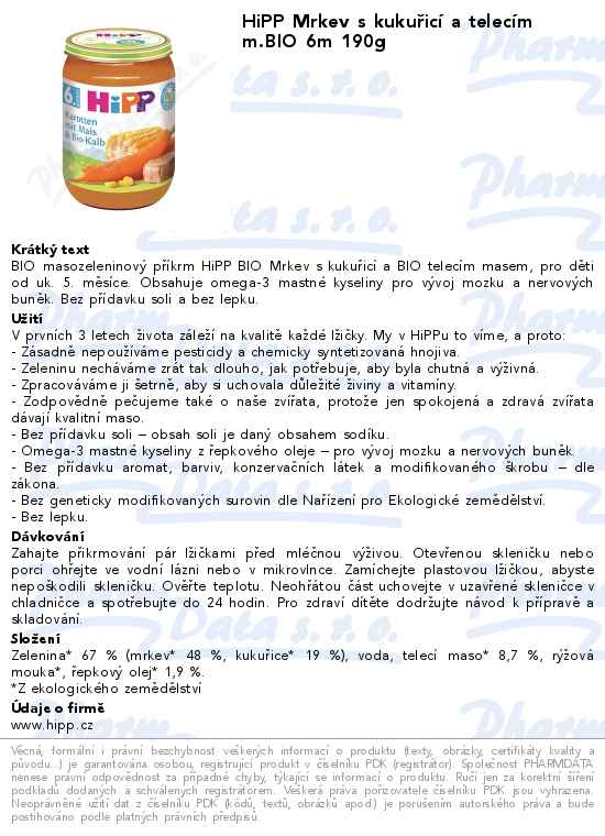 HiPP Mrkev s kukuřicí a telecím m.BIO 6m 190g