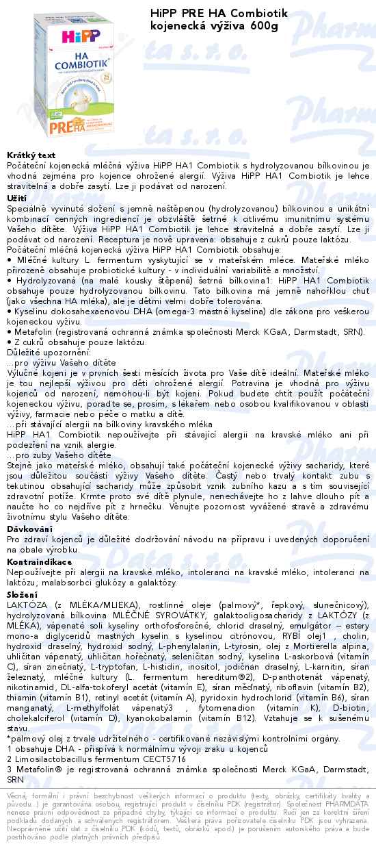 HiPP PRE HA Combiotik kojenecká výživa 600g