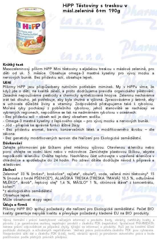 HiPP Těstoviny s treskou v másl.zelenině 6+m 190g