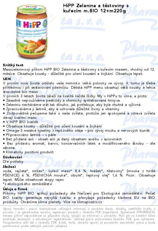 HiPP Zelenina a těstoviny s kuřecím m.BIO 12+m220g