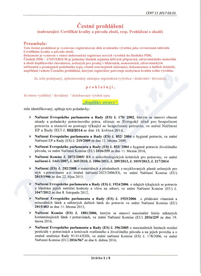 5 strany čestného prohlášení: strana 1, strana 2, strana 3, strana 4, strana 5,