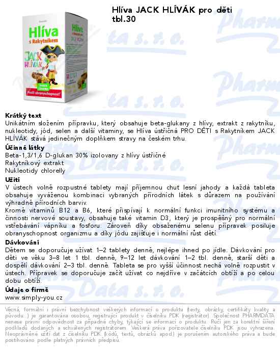 Hlíva JACK HLÍVÁK pro děti tbl.30