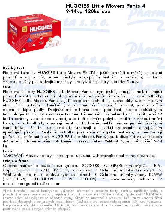HUGGIES Little Movers Pants 4 9-14kg 120ks box