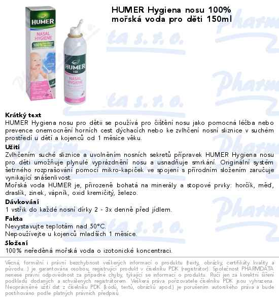 HUMER Hygiena nosu 100% mořská voda pro děti 150ml
