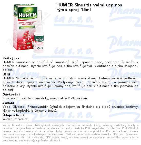 HUMER Sinusitis velmi ucp.nos rýma sprej 15ml