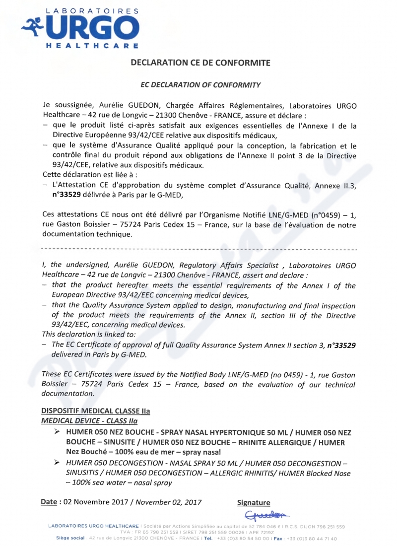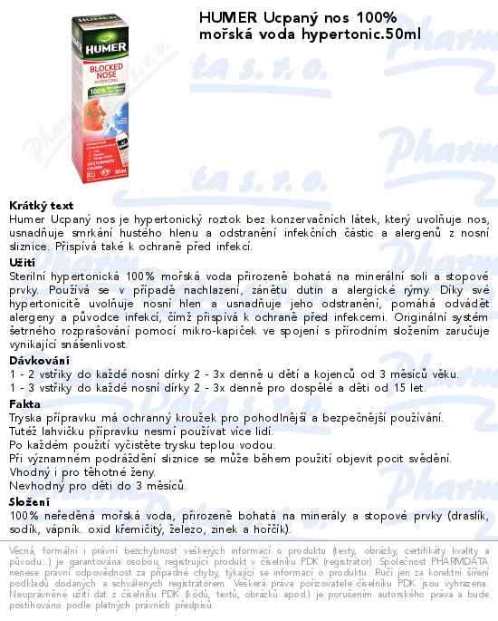 HUMER Ucpaný nos 100% mořská voda hypertonic.50ml