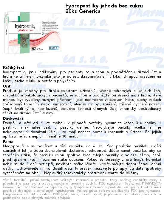 hydropastilky jahoda bez cukru 20ks Generica