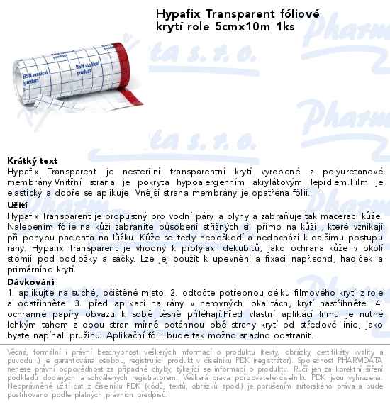 Hypafix Transparent fóliové krytí role 5cmx10m 1ks
