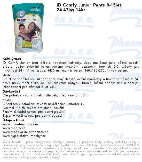 iD Comfy Junior Pants 8-15let 24-47kg 14ks