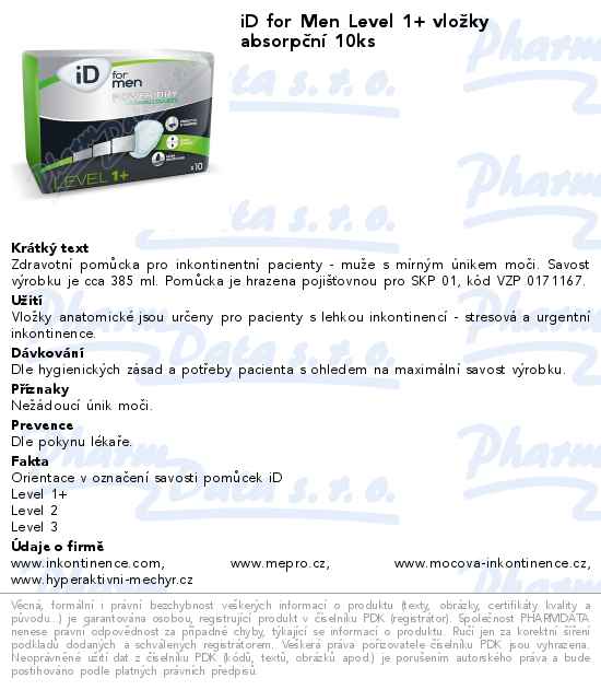 iD for Men Level 1+ vložky absorpční 10ks