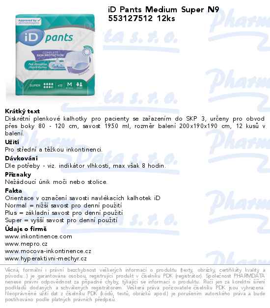 iD Pants Medium Super N9 553127512 12ks