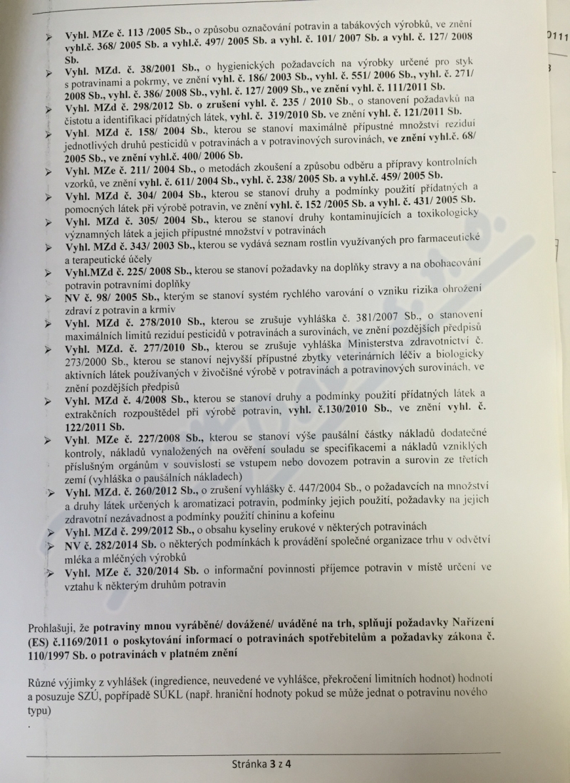 3 strany osvědčení hlavního hygienika: strana 1, strana 2, strana 3,
