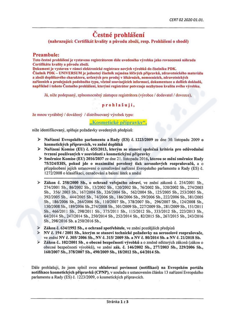 3 strany čestného prohlášení: strana 1, strana 2, strana 3,