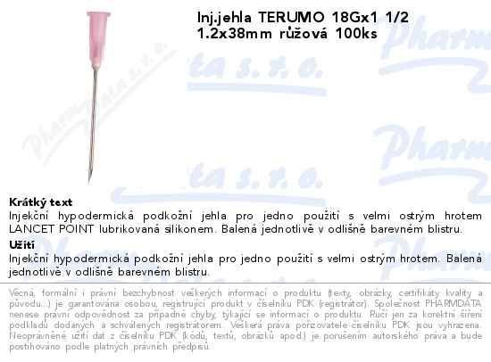 Inj.jehla TERUMO 18Gx1 1/2 1.2x38mm růžová 100ks