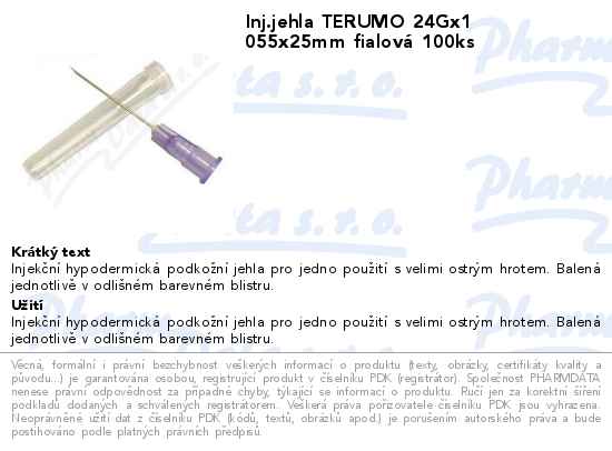 Inj.jehla TERUMO 24Gx1 055x25mm fialová 100ks
