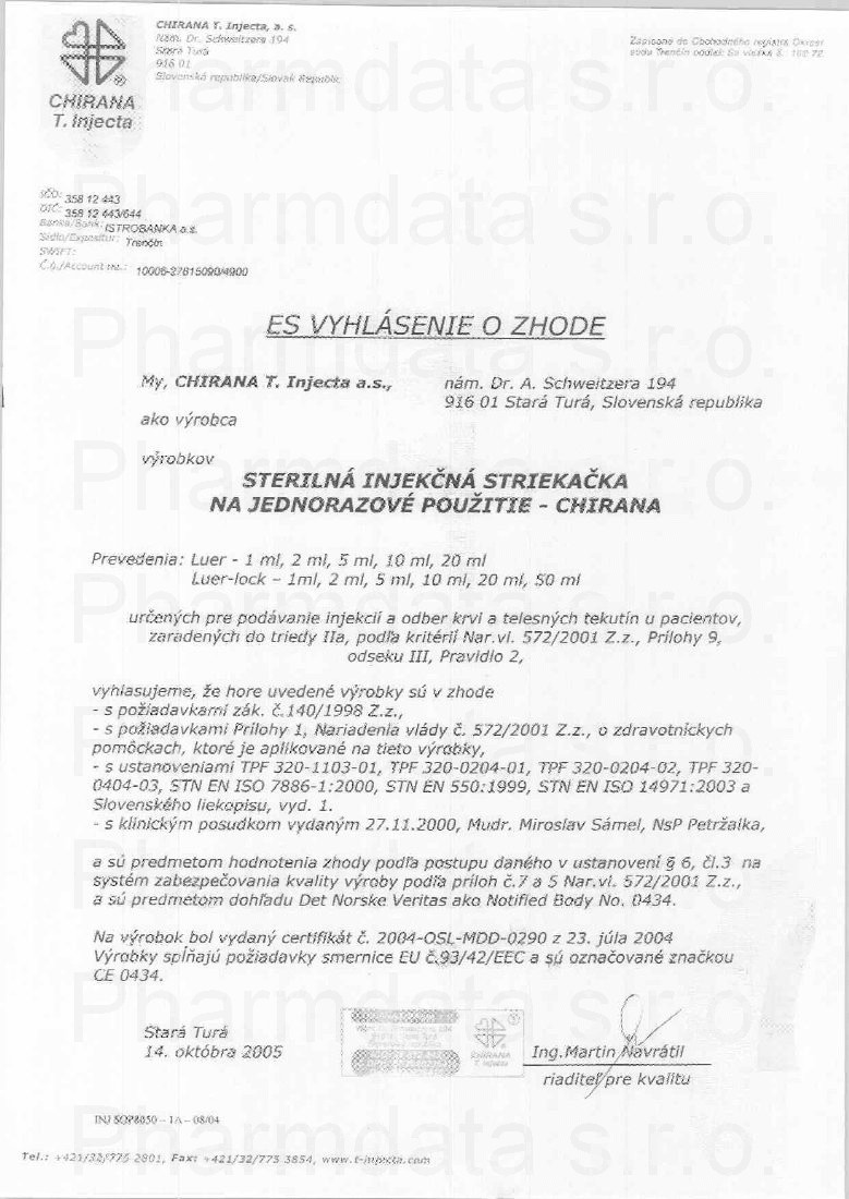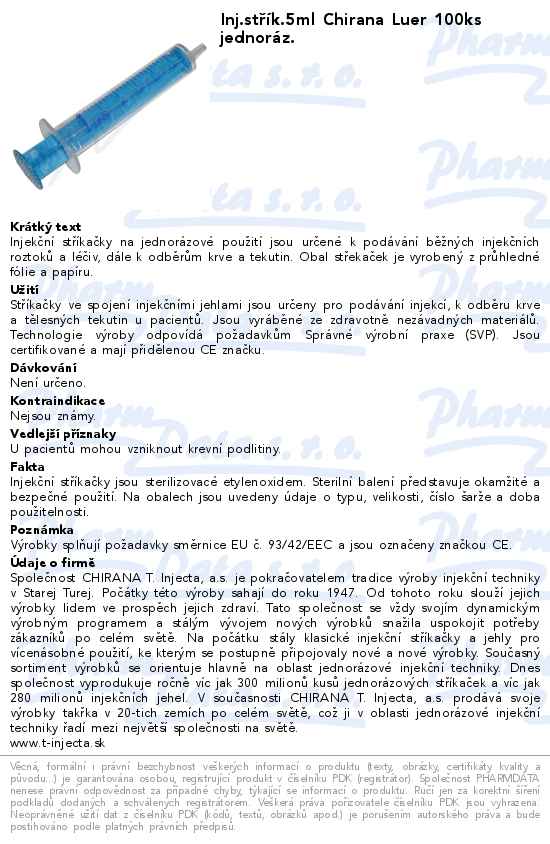 Inj.střík.5ml Chirana Luer 100ks jednoráz.