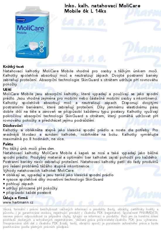 Inko. kalh. natahovací MoliCare Mobile 6k L 14ks