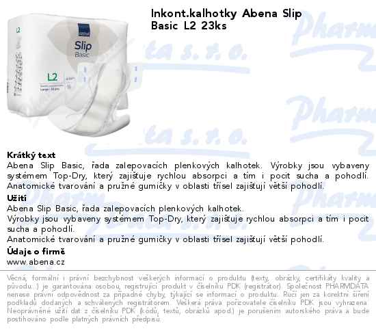 Inkont.kalhotky Abena Slip Basic L2 23ks