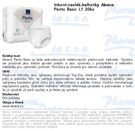 Inkont.navlék.kalhotky Abena Pants Basic L1 20ks
