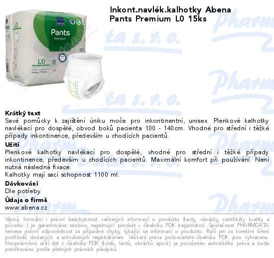 Inkont.navlék.kalhotky Abena Pants Premium L0 15ks