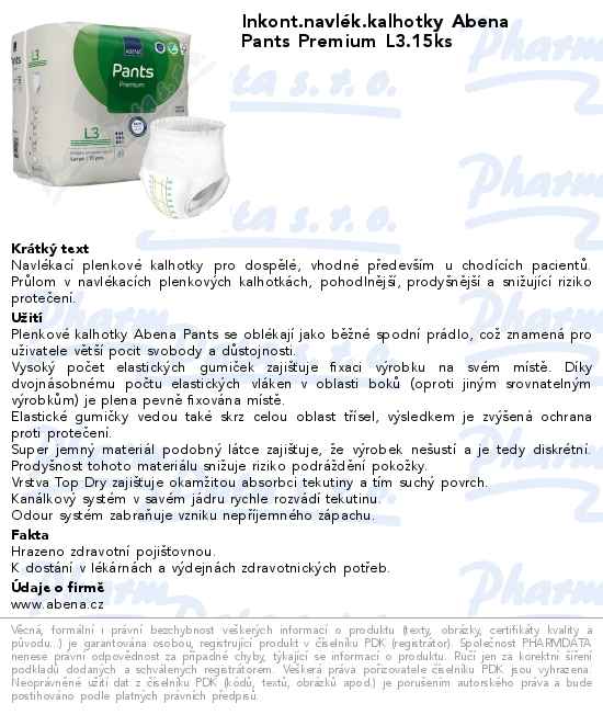 Inkont.navlék.kalhotky Abena Pants Premium L3.15ks