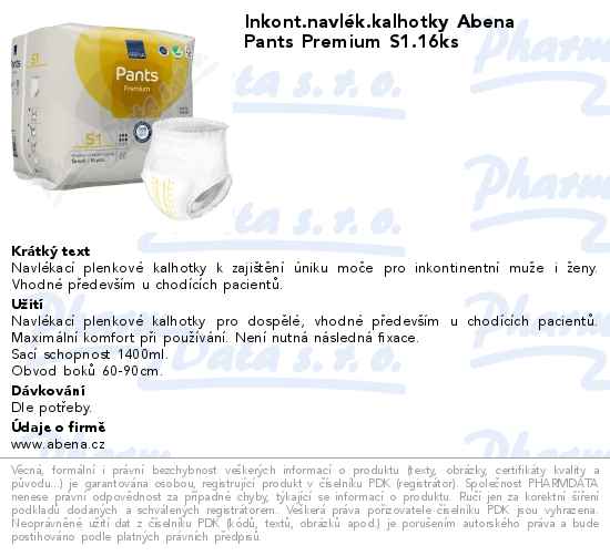 Inkont.navlék.kalhotky Abena Pants Premium S1.16ks