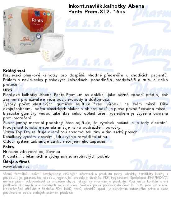 Inkont.navlék.kalhotky Abena Pants Prem.XL2. 16ks