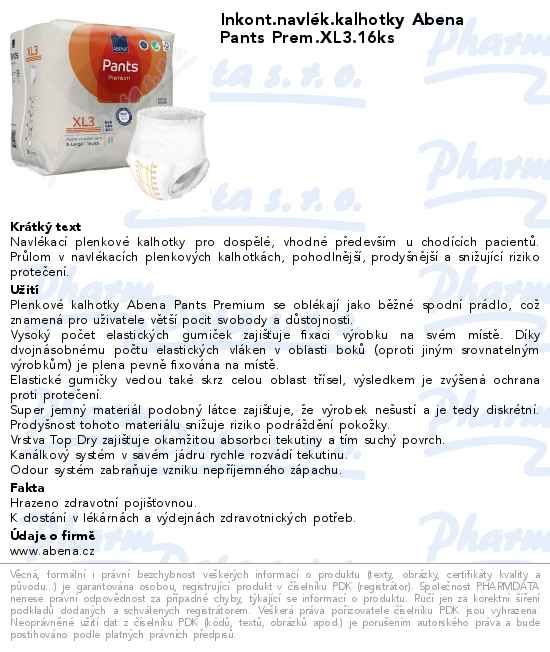 Inkont.navlék.kalhotky Abena Pants Prem.XL3.16ks