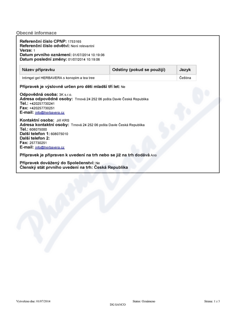 Intimgel gel s konopím a Tea tree HERBAVERA 250ml