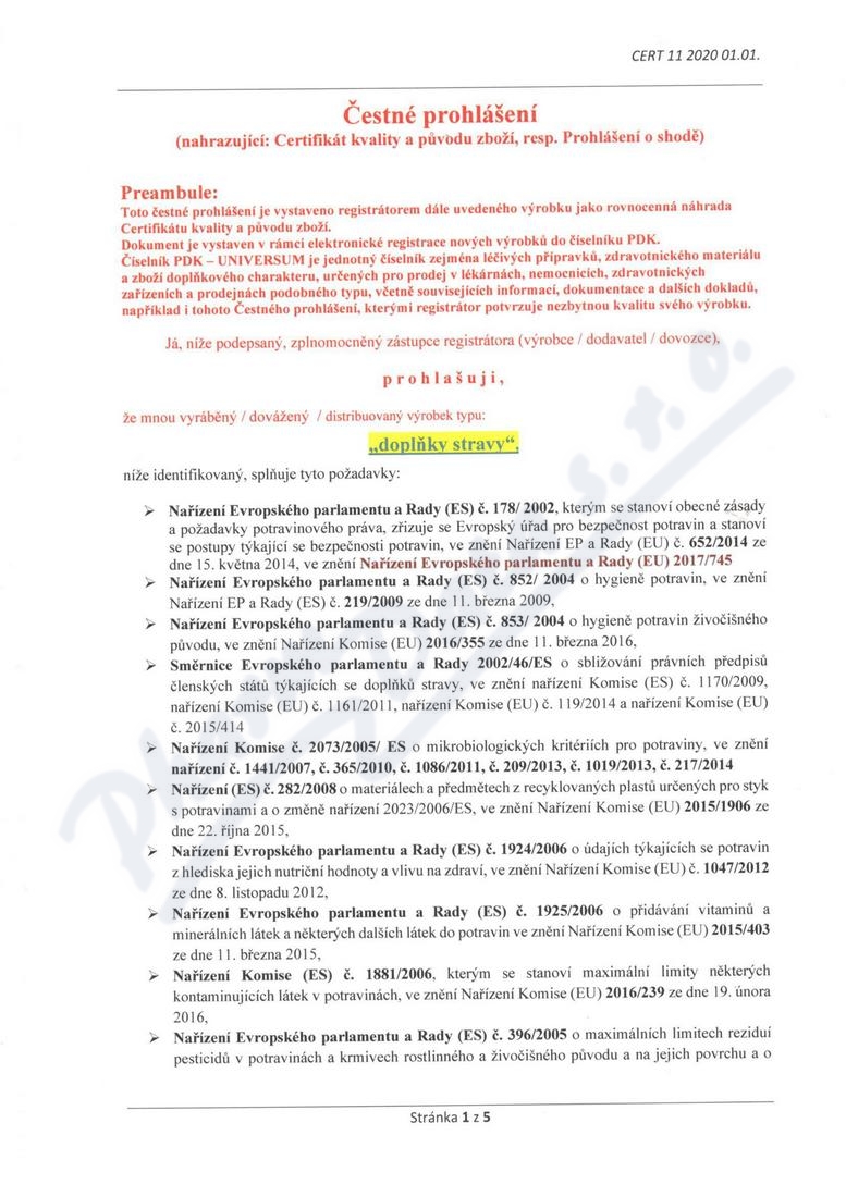5 strany čestného prohlášení: strana 1, strana 2, strana 3, strana 4, strana 5,