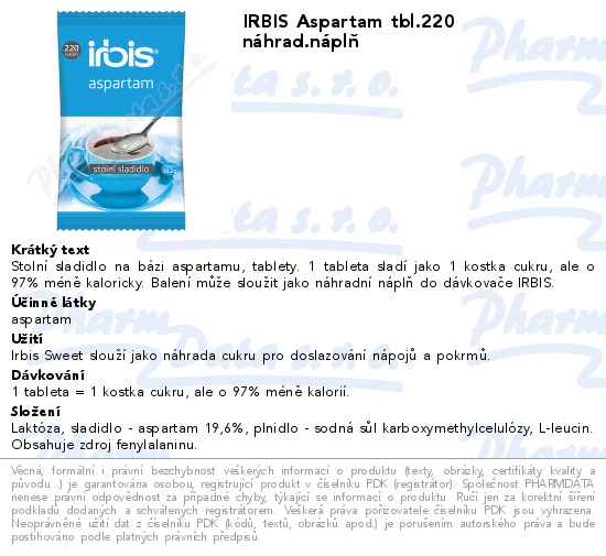 IRBIS Aspartam tbl.220 náhrad.náplň