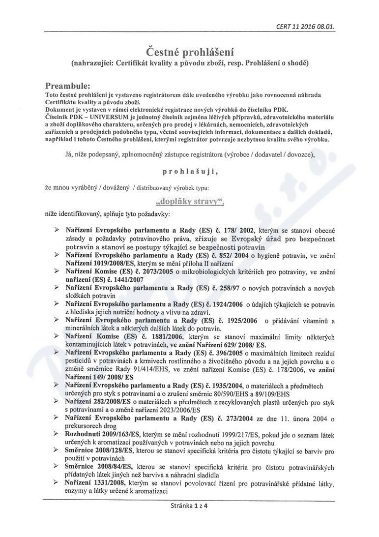 4 strany čestného prohlášení: strana 1, strana 2, strana 3, strana 4,