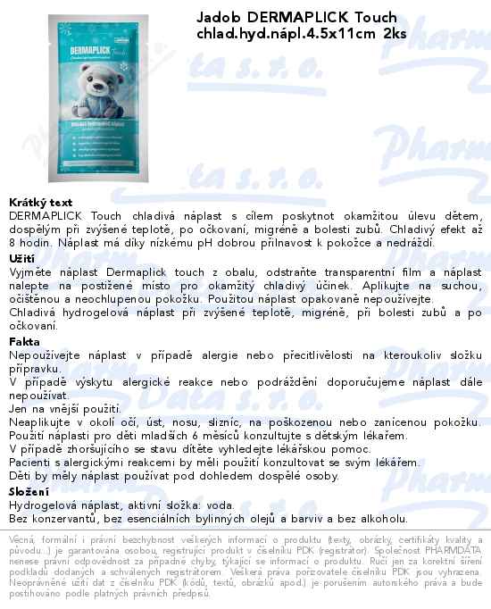 Jadob DERMAPLICK Touch chlad.hyd.nápl.4.5x11cm 2ks